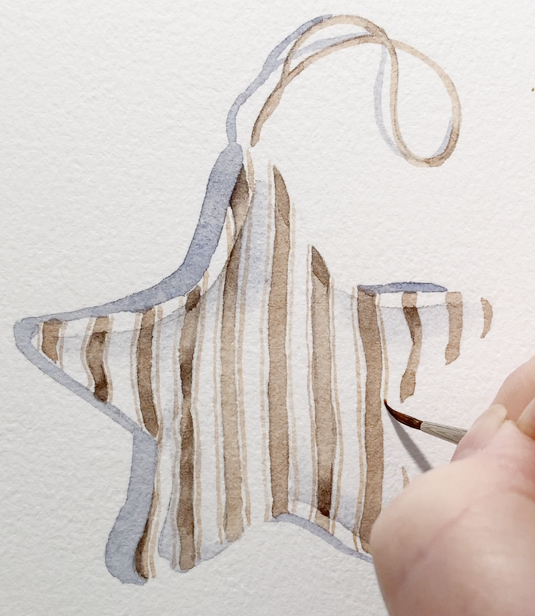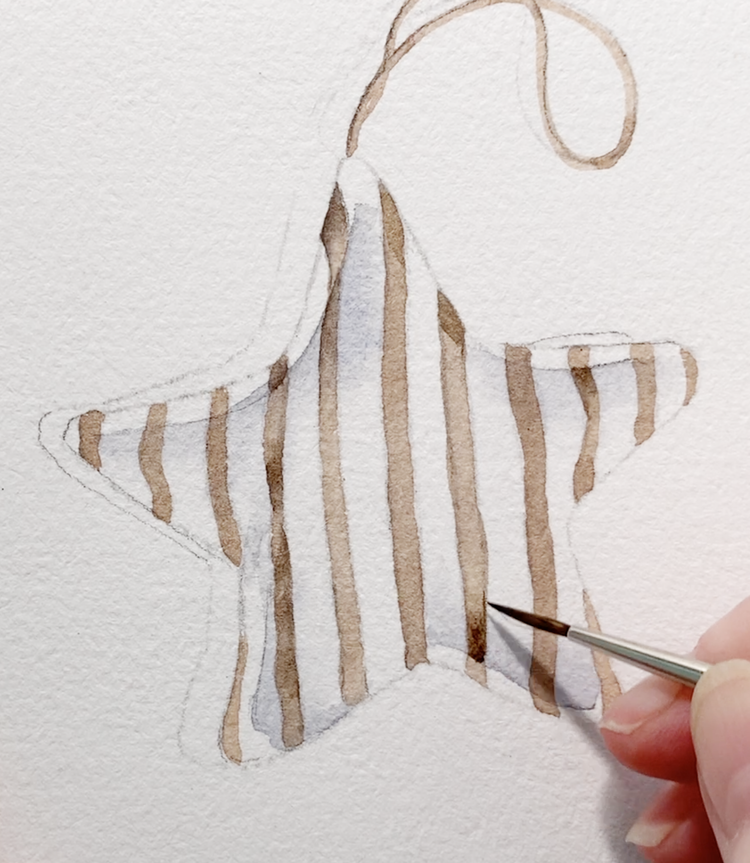 Start with that same warm brown mixture you used for the star. Using your fine Size 0 brush, paint the top string in one smooth, steady line.