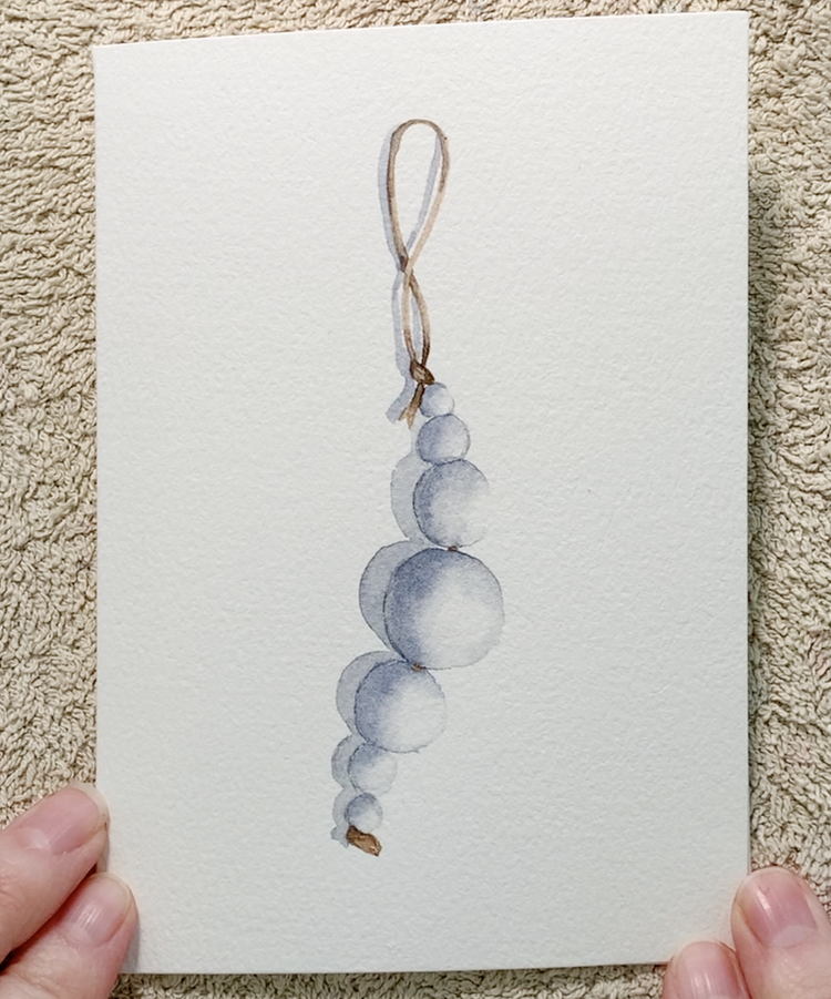 Finally, check your edges—if any look a little too sharp or “harsh,” use a slightly damp brush to soften them out. Let the card dry completely. Your second ornament is finished—a delicate, warm, and beautifully understated watercolor Christmas card!
