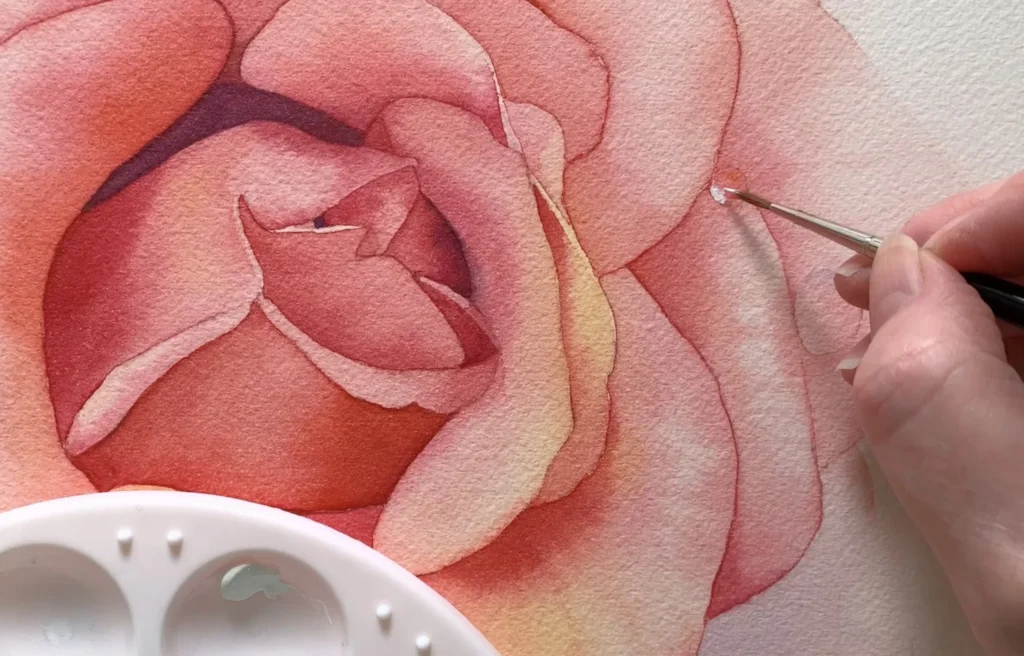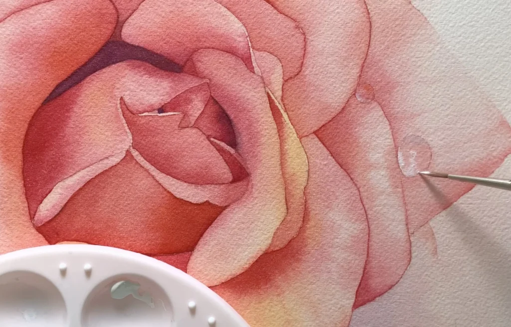 Sometimes, it’s the tiniest details that truly bring a painting to life. A little glisten here, a soft shadow there, and suddenly your flower looks as though it’s fresh from the garden. That is exactly what happened when I was painting this rose.