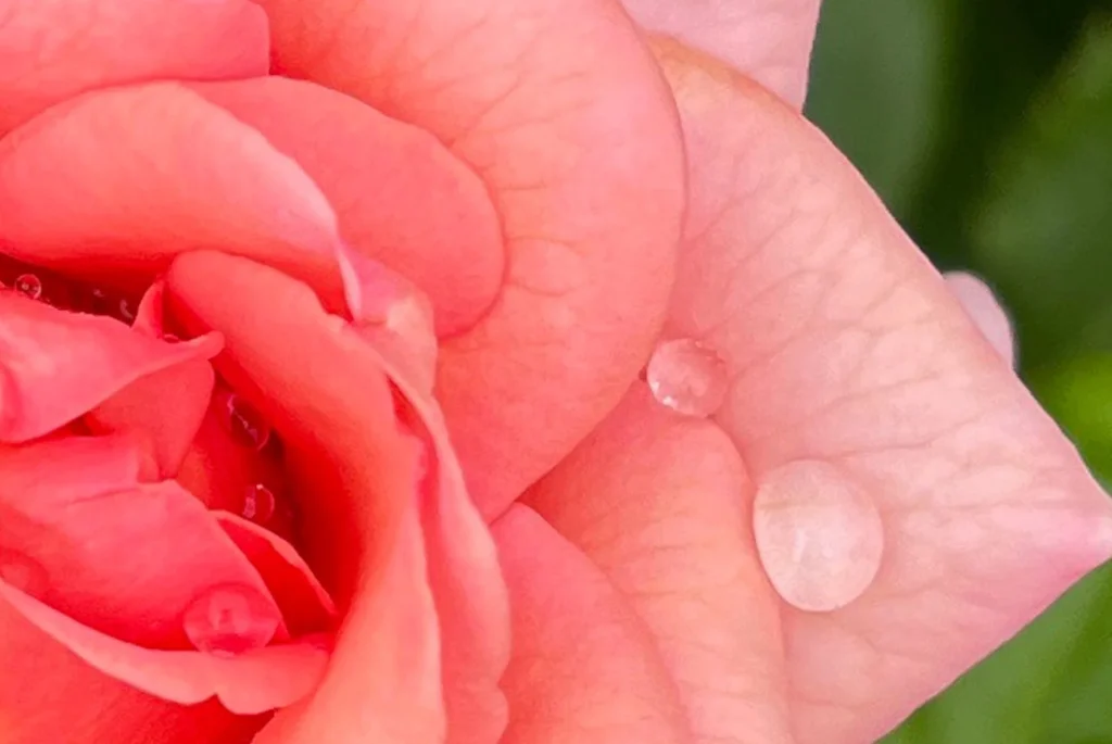 When droplets sit on the darker parts of the flower, like the deep magenta folds or the rose cup, they require a slightly different touch: